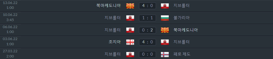 축구분석 축구픽 지브롤터 최근전적